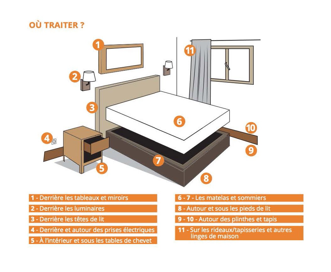 Nous utilisons des produits chimiques avec pulvérisateur ou nubé pour le traitement des punaises de lit. |